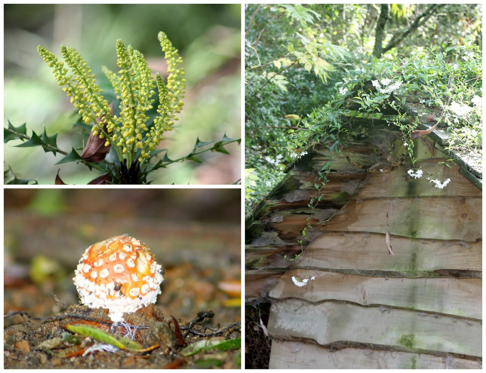 The back garden is covered in leaves and the only colour you will find is my blue chairs and the odd pinch of something flowering.