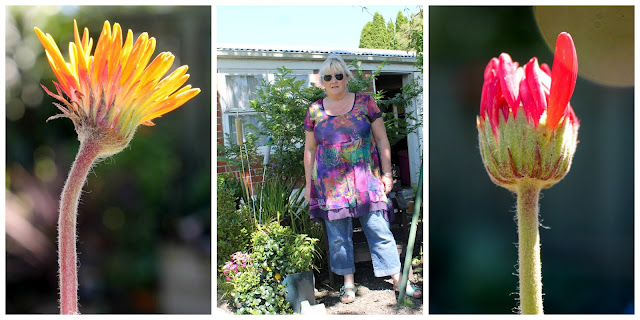 On Monday I ended up going with the Spare out to the Warehouse (shop). He was looking for man stuff so I went into the gardening section. I found CARNATIONS!!! 2 for $10, but which two to choose?? Then I found a clearance shelf where I grabbed 4 Gerberas that were only 50 cents each and in dire need of a large drink of something. They looked half dead but I knew that all they needed was some water. SCORE!!!